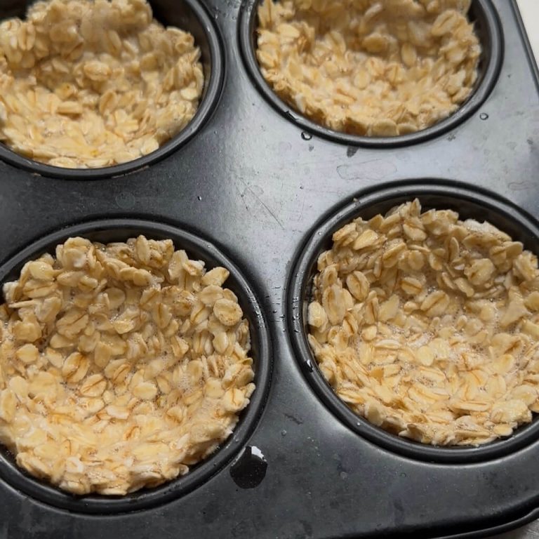 SI cestini si realizzano con soli 2 ingredienti: avena e albumi d’uovo, che si mescolano insieme in una ciotola. Poi si distribuisce il composto negli stampini per muffin (precedentemente unti con un filo d’olio di semi, in modo che non si attacchi l’impasto) e si cuociono in forno a 190 gradi per 15 minuti circa.
