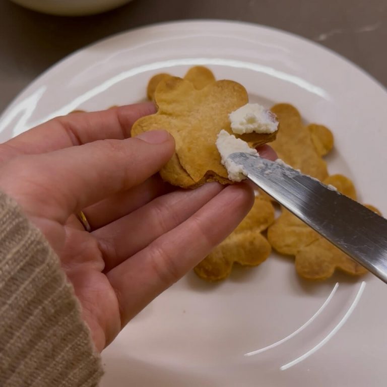 Spalmare ai lati dei cestini un po’ di formaggio spalmabile.