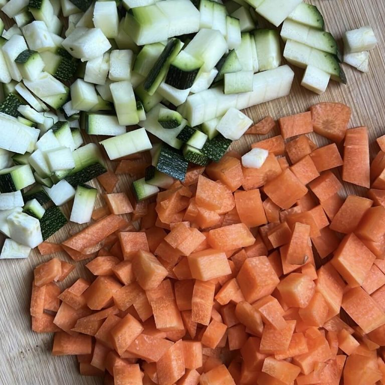 Tagliate zucchine e carote a cubetti