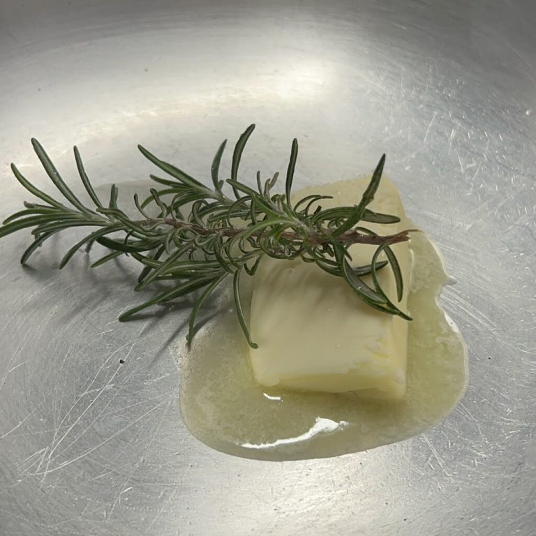 Aggiustate di sale e pepe nero, aggiungete un mestolo di acqua di cottura della pasta ed eliminate il rosmarino.