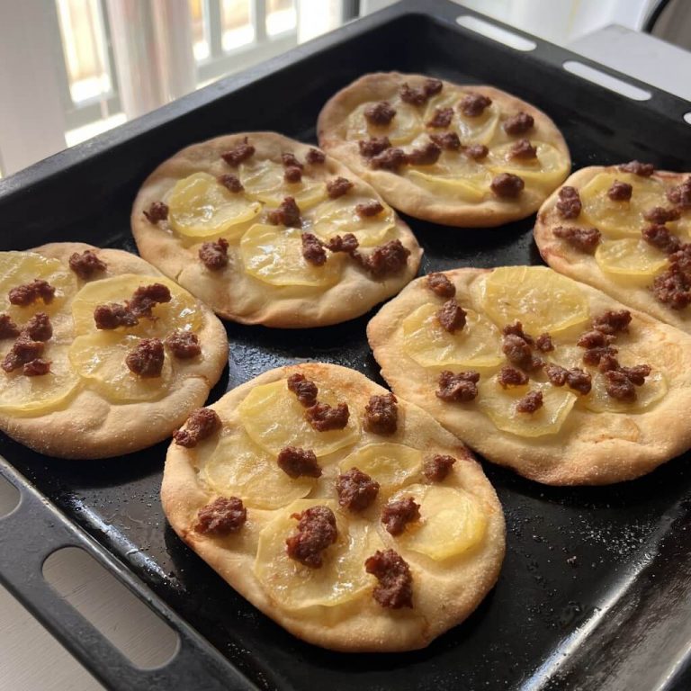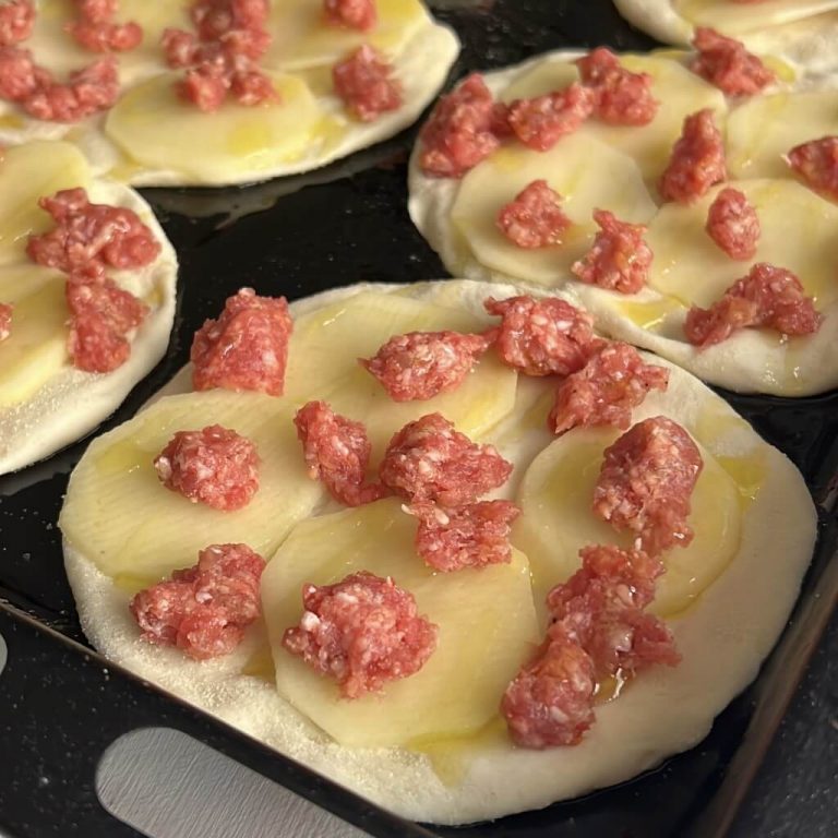 Appena sfornate, le pizzette sprigionano profumi che fanno venire l’acquolina in bocca: l’aroma della salsiccia rosolata si unisce al profumo delicato delle patate, mentre la base croccante sostiene il tutto con leggerezza. È impossibile resistere al richiamo di questa combinazione che trasforma un semplice snack in un piccolo capolavoro culinario. E voi che dite è l’ora dell’aperitivo?