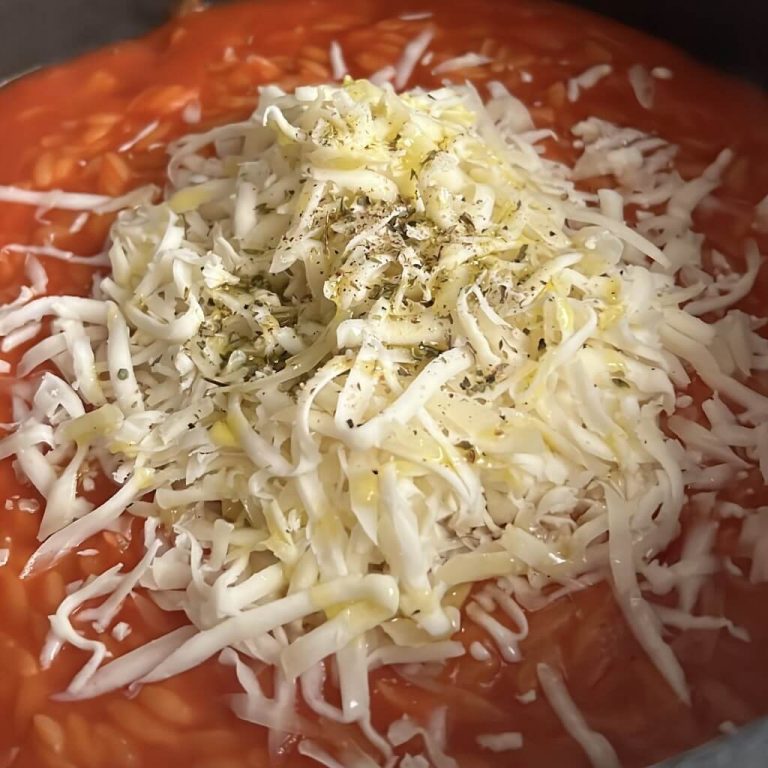 Il segreto sta tutto nella base: un fondo di olio e scalogno, pomodoro dolce e una pioggia di origano che profuma tutta la cucina. I risoni assorbono il sugo come un risotto, diventando cremosi e irresistibili. E alla fine, in questo caso un tocco di scamorza leggermente stagionata che rilascia un profumo pazzesco e una volta mantecata in padella, basta una forchettata che si allunga e trasforma un piatto “semplice” in pura goduria.