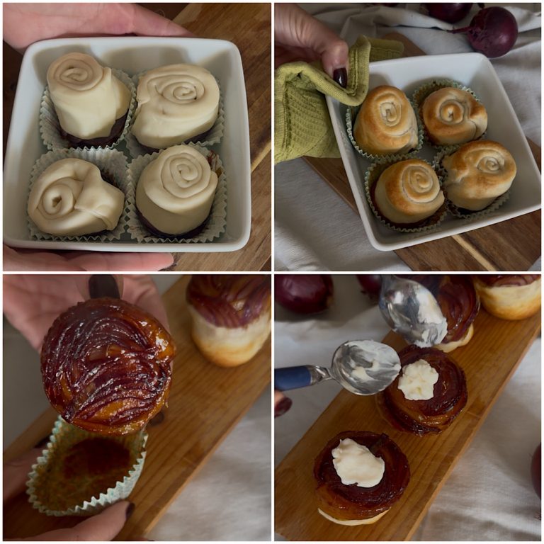 Le rose di cipolle con pasta sfoglia non solo sono buonissime, ma anche bellissime da vedere, infatti sembrano piccoli fiori dorati che decorano la tavola con eleganza e semplicità. Perfette per un pranzo della domenica, una cena tra amici o un buffet, sono un modo originale per servire le cipolle in una veste nuova e raffinata.